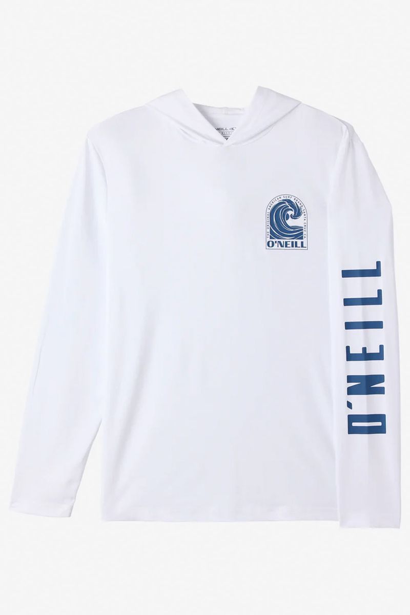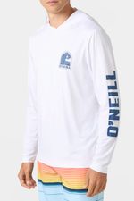 Este Buzo de protección solar blanco con capucha y estampado O'Neill azul en la manga izquierda, con logo O´NEILL de olas en la parte delantera, le da un toque de estilo a tu día.