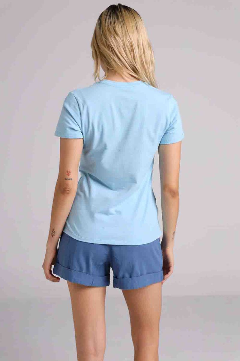Fabricada con materiales de alta calidad y con un ajuste clásico que realza tu figura, esta camiseta femenina azul pastel es perfecta para lucir un look moderno y relajado tanto en la playa como en la ciudad.
